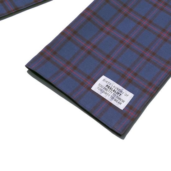 裏面をスクールマフラーで見られるような無地(ダークパープルのコットンネル)に切り替えた仕様で全長が175cmと男性が巻いても短すぎないシックスフィッターと呼ばれるサイズ感です。