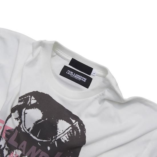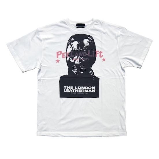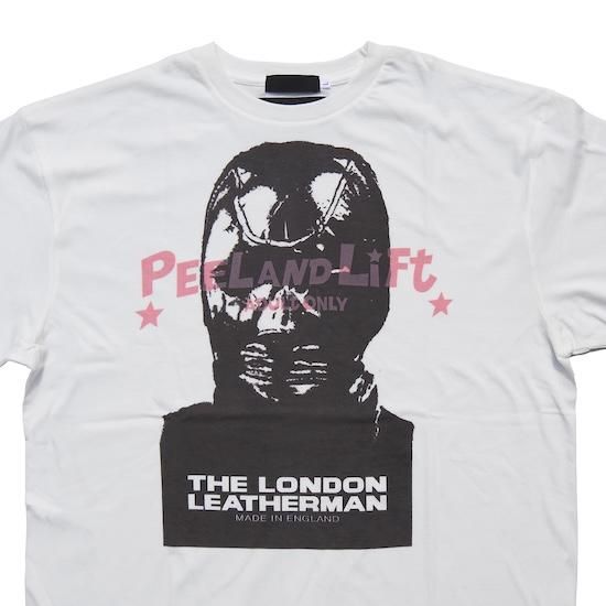 THE LONDON LEATHERMANのアイコニックなレザーマスクのグラフィックにPEEL&LIFTのカートゥーン調のロゴを組み合わせたコラボレーションTシャツです。